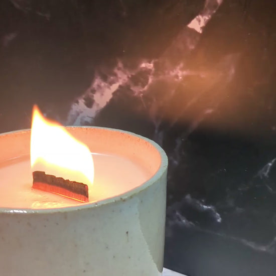This exquisitely handcrafted pottery cradles a hand-poured soy wax candle, releasing an enchanting aroma that transforms any space into a sanctuary of elegance and warmth. We use only sustainable wood wicks to achieve a comforting crackle and clean burn every time.